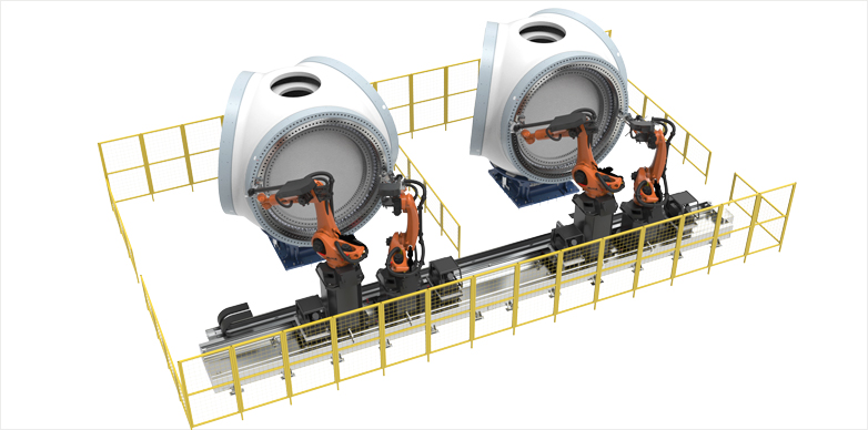 在新能源領(lǐng)域——風(fēng)電行業(yè),必一运动 B-sports智造國(guó)內(nèi)首創(chuàng)的機(jī)器人智能螺栓緊固系統(tǒng),擁有多項(xiàng)專利技術(shù),風(fēng)電行業(yè)螺栓緊固系統(tǒng)處于市場(chǎng)領(lǐng)先地位;風(fēng)電主機(jī)裝配用的重載AGV智能化脈動(dòng)生產(chǎn)線,多車聯(lián)動(dòng)技術(shù)獨(dú)樹(shù)一幟;風(fēng)電葉片大型曲面智能柔性磨拋技術(shù)、機(jī)架超厚板自動(dòng)化焊接機(jī)器人系...